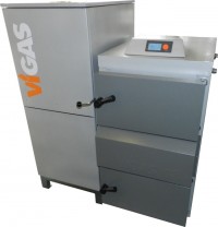A kazán részét képezik továbbá a váltómű, az elektromos begyújtó berendezés, a biztonsági cellás adagoló, a füstgázhőmérséklet érzékelő valamint az ultrahangos pelletszint érzékelő. A kazán belső részét az elgázosító kamra alkotja, amelyben a faelgázosító üzemmód közben a fa égése, száradása és gázosítása történik. Az így keletkező fagáz egy hőálló betonfúvókán át az alsó égéstérbe áramlik, ahol a szekunder levegővel keveredve begyullad és 1200 °C mellett elég. A kazán elülső részén elhelyezett húzórúd által kezelt kéménycsappantyú a begyújtás elősegítését szolgálja.